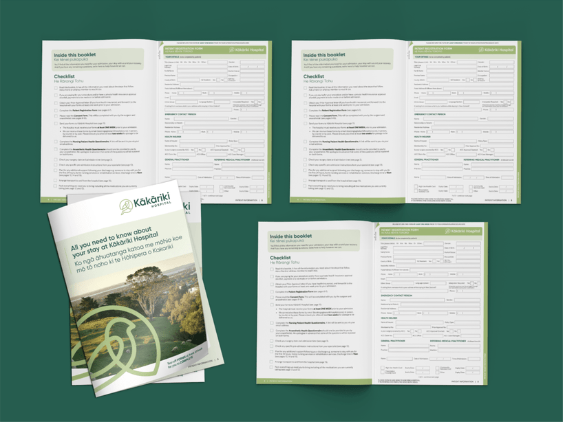 Kākāriki Hospital is a private hospital focused on delivering exceptional patient care in a calm, modern environment. I created the branding for the hospital and went on to design a suite of printed collateral that brings consistency, clarity, and professionalism to every patient interaction.