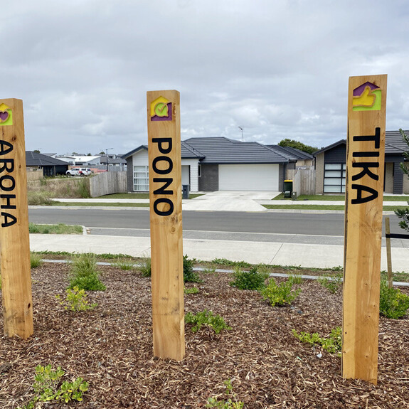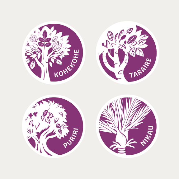 Logomark and values icons designed by Maaka Potini, Artist, Ngāti Tamaoho